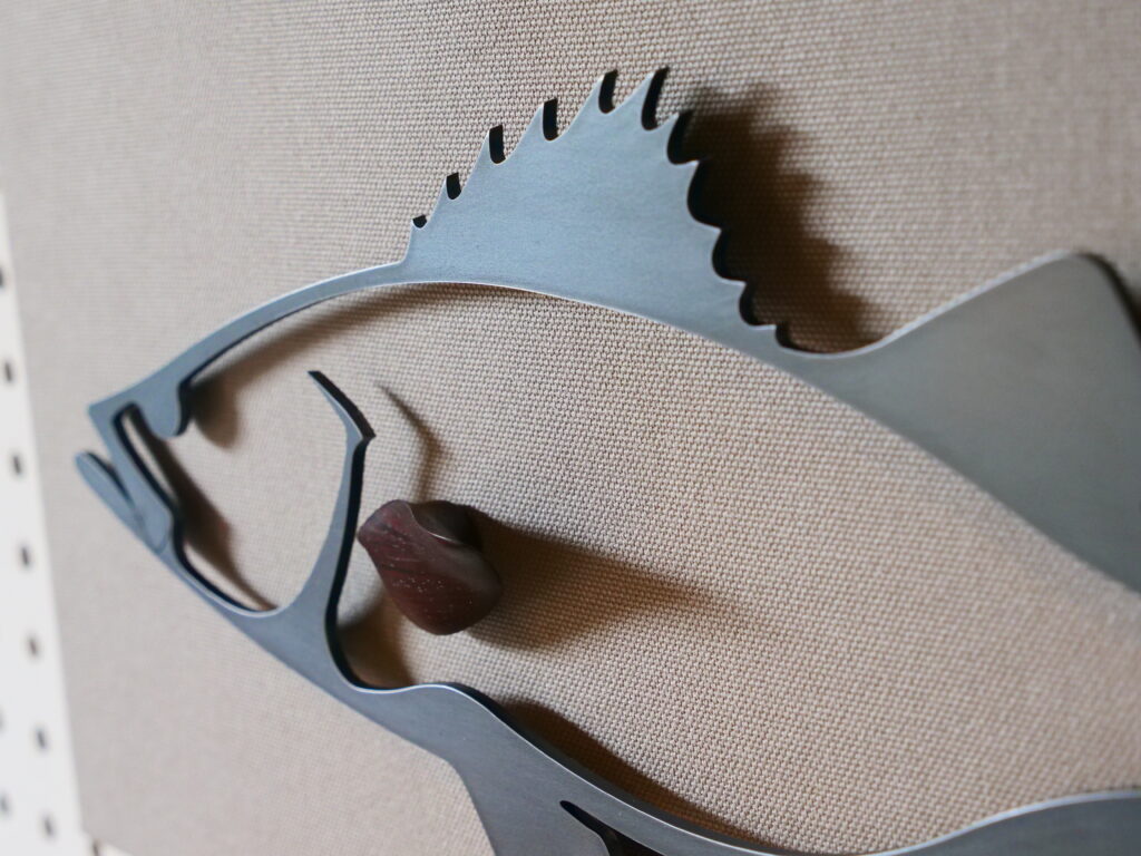 黒皮の鉄鉄しさがマルスズキの黒光りした魚体の様で美しく仕上がりました。